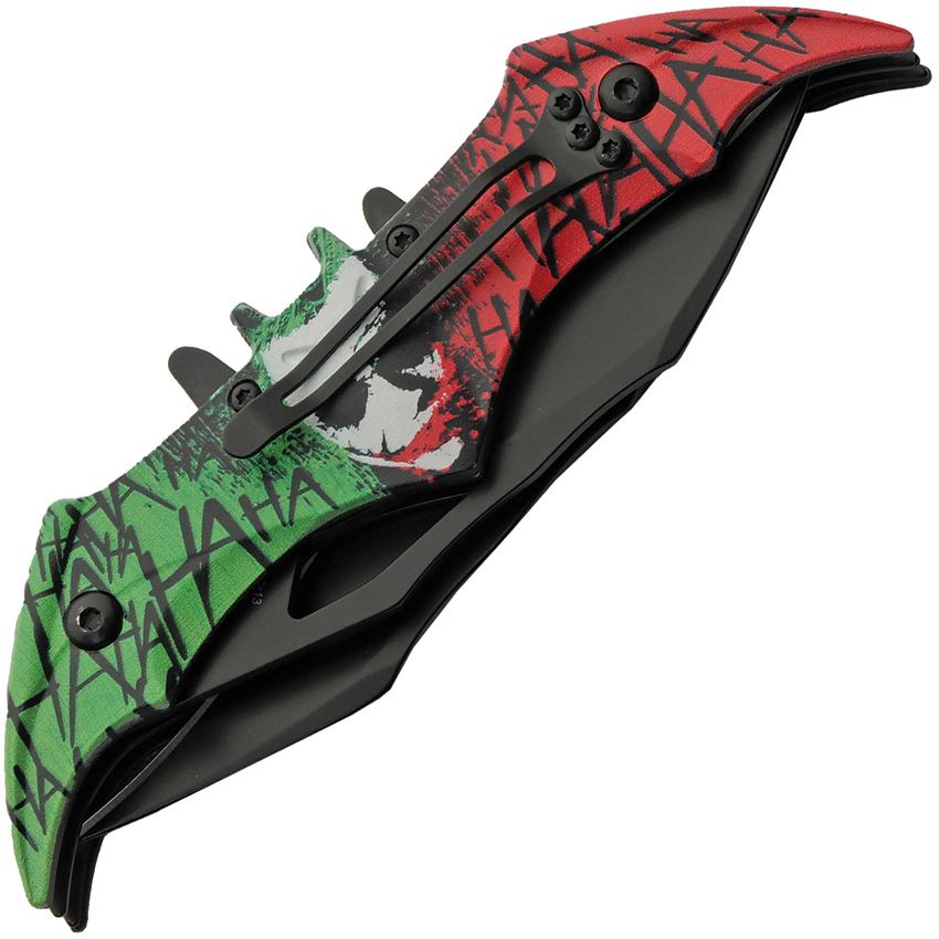 Rite Edge 300609JK Laughing Joker Assist Open Black Linerlock Knife Red/Green Handles