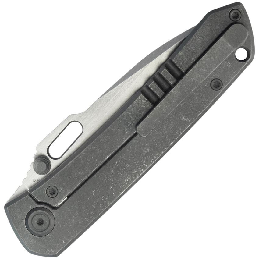 Model/Item/Part Number - KUB259B. Kubey Blackout Two Tone Drop Point Framelock Knife Gray Titanium Handles. 4.25" (10.8cm) closed. 3.13" (7.95cm) Bohler M390 stainless drop point blade. Gray titanium handle. Thumb stud. Thumb pull. Lanyard hole. Pocket clip. Brushed and sand blast finish blade. Boxed. Made in China.