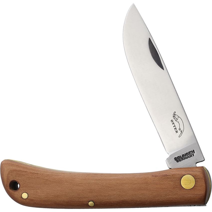 Model/Item/Part Number - OTT141PB. OTTER-Messer Small Hippekniep Carbon Steel Knife Ice Plum Wood Handles. 3.5" (8.89cm) closed. 3" (7.62cm) satin finish carbon steel blade. Plumwood handle. Lanyard hole. Bulk packed. Made in Germany.