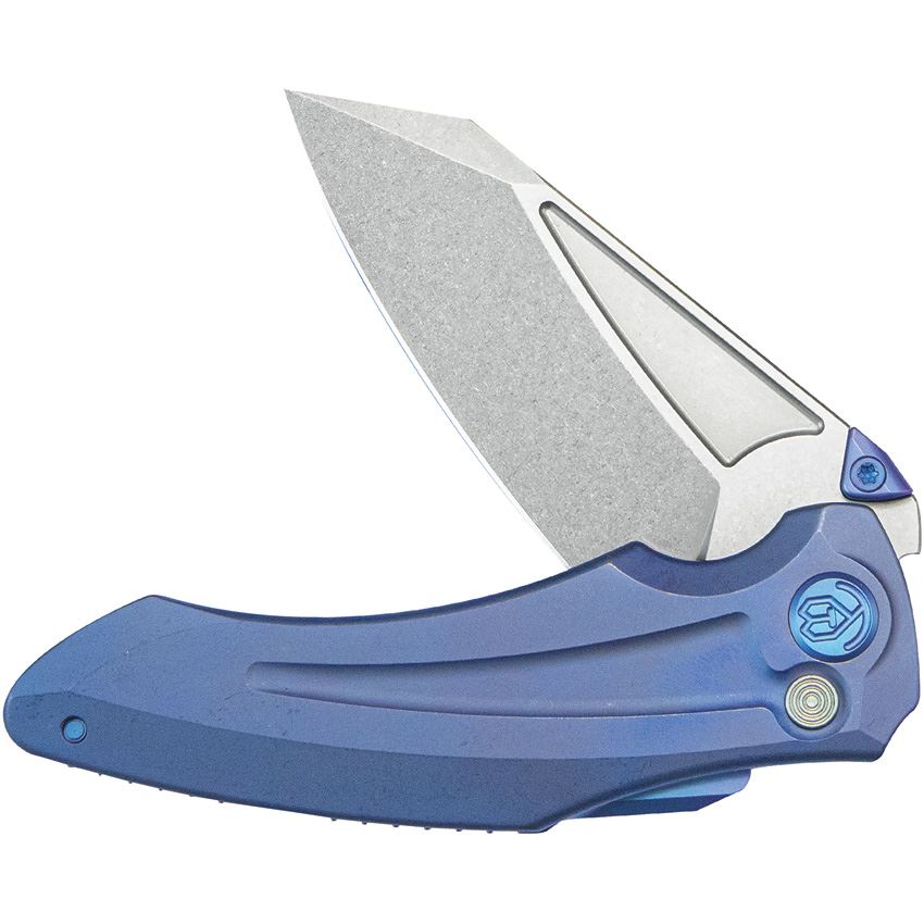 Kubey 400C Sumo Stonewash Button Lock Knife Blue Stonewash Titanium Handles