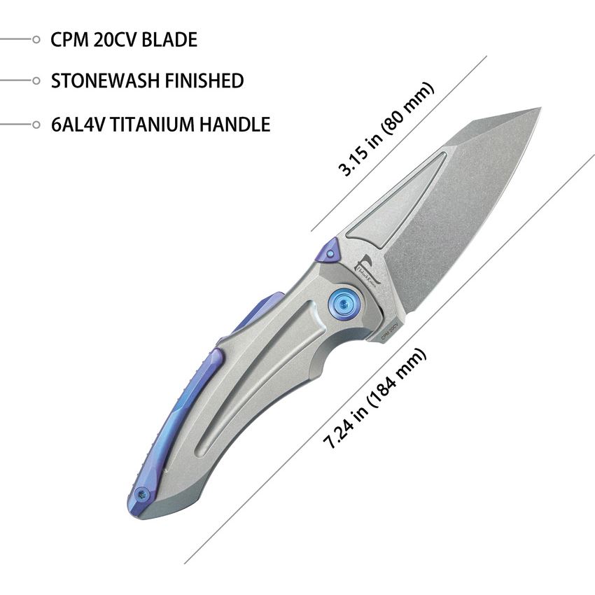 • Stonewash finish titanium handle