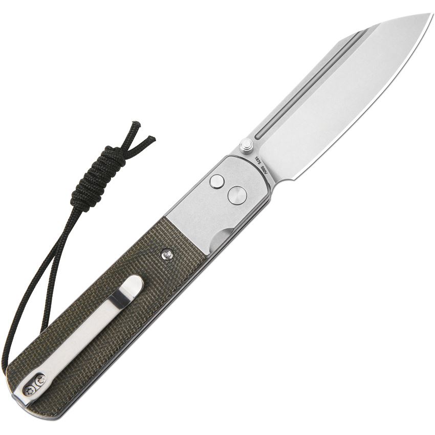 • Artisan Holm Stonewash Wharncliff Button Lock Knife OD Green Micarta Handles