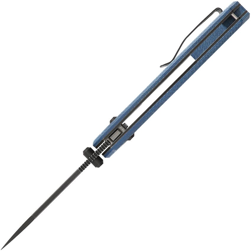 Model/Item/Part Number - CMB18E. CMB Explorer Black Stonewash Axis Lock Knife Blue Micarta Handles. 4.5" (11.43cm) closed. 3.38" (8.59cm) black stonewash finish 14C28N Sandvik stainless blade. Blue canvas micarta handle. Thumb stud. Pocket clip. Boxed. Made in China.