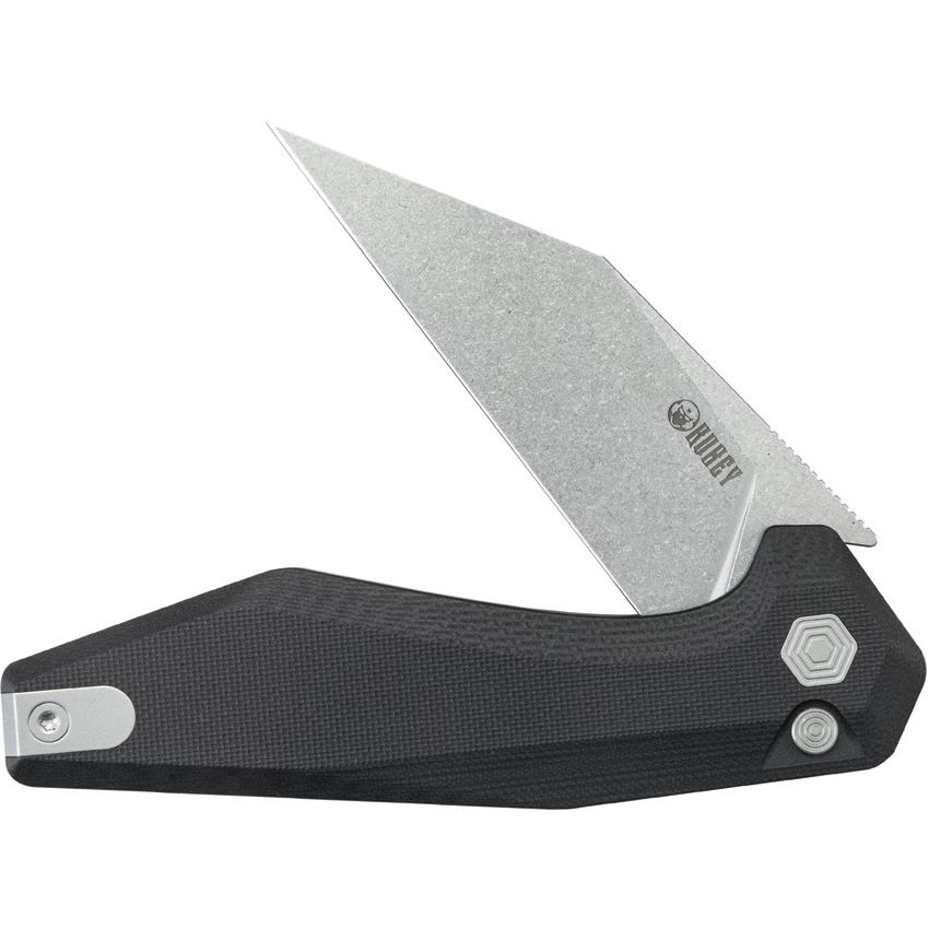 • Kubey Fenrir Stonewash Button Lock Knife Black G10 Handles