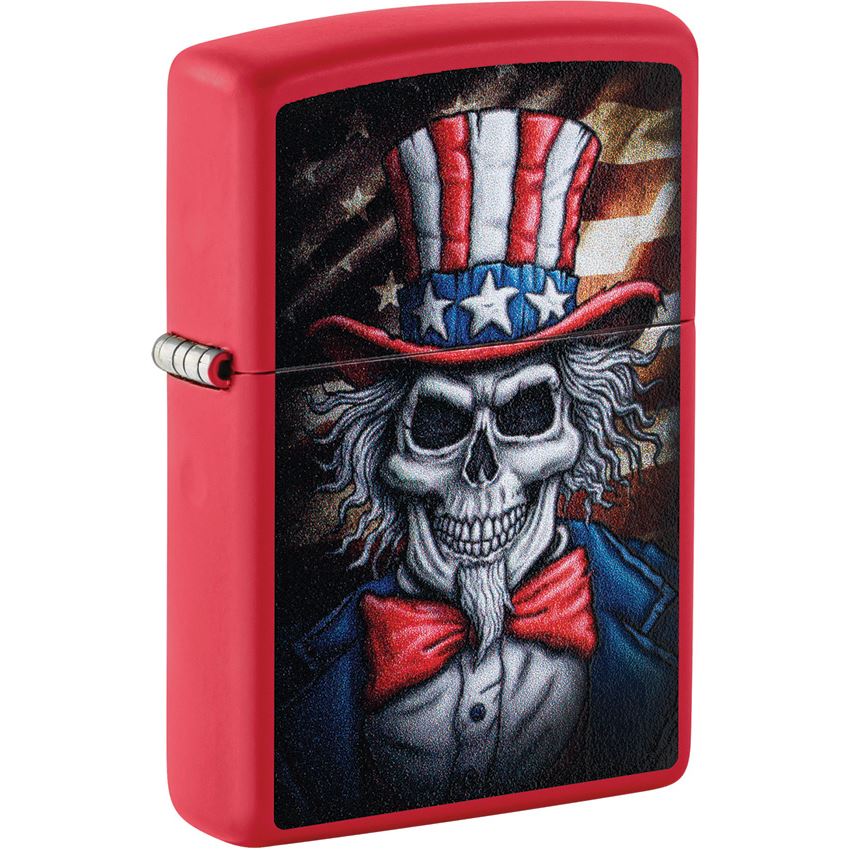 Model/Item/Part Number - ZO27227. Zippo Uncle Skull Lighter. Dimensions: 0.5" x 2.25". Red Matte. Boxed. Proudly made here in the USA.