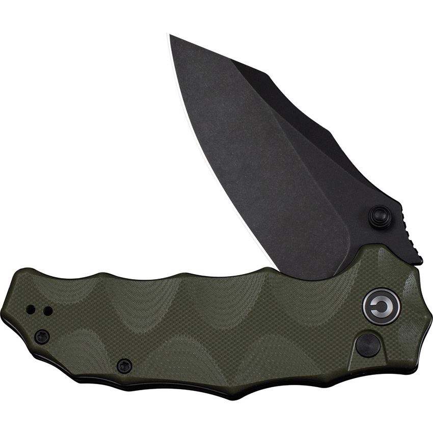 - Civivi Natterjack Black Stonewash Clip Point Button Lock Knife OD Green G10 Handles