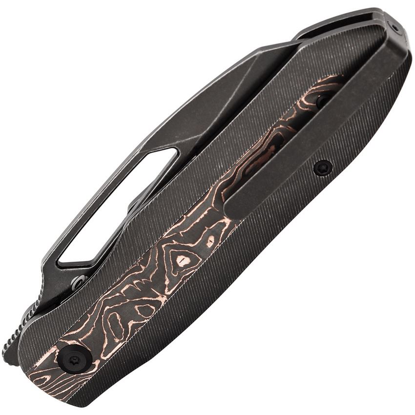 - Black stonewash finish titanium handle with Copper foil carbon fiber inlay