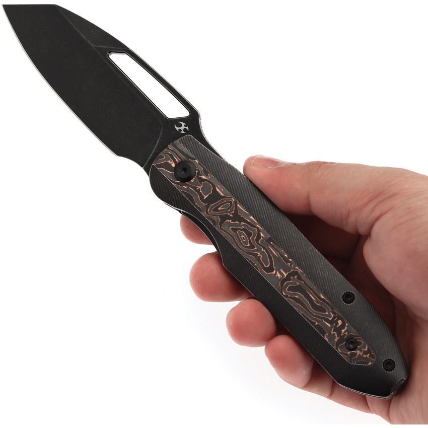 - Kansept Thunderhead Blackwash Reverse Tanto Linerlock Knife Black Stonewash/Copper Foil Carbon Fiber Handles