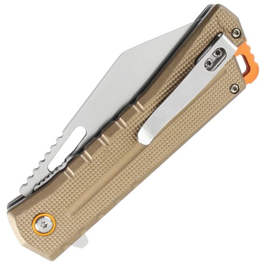 • MTech Knives - Assist Open Satin Clip Point Linerlock Knife Tan Aluminum Handles