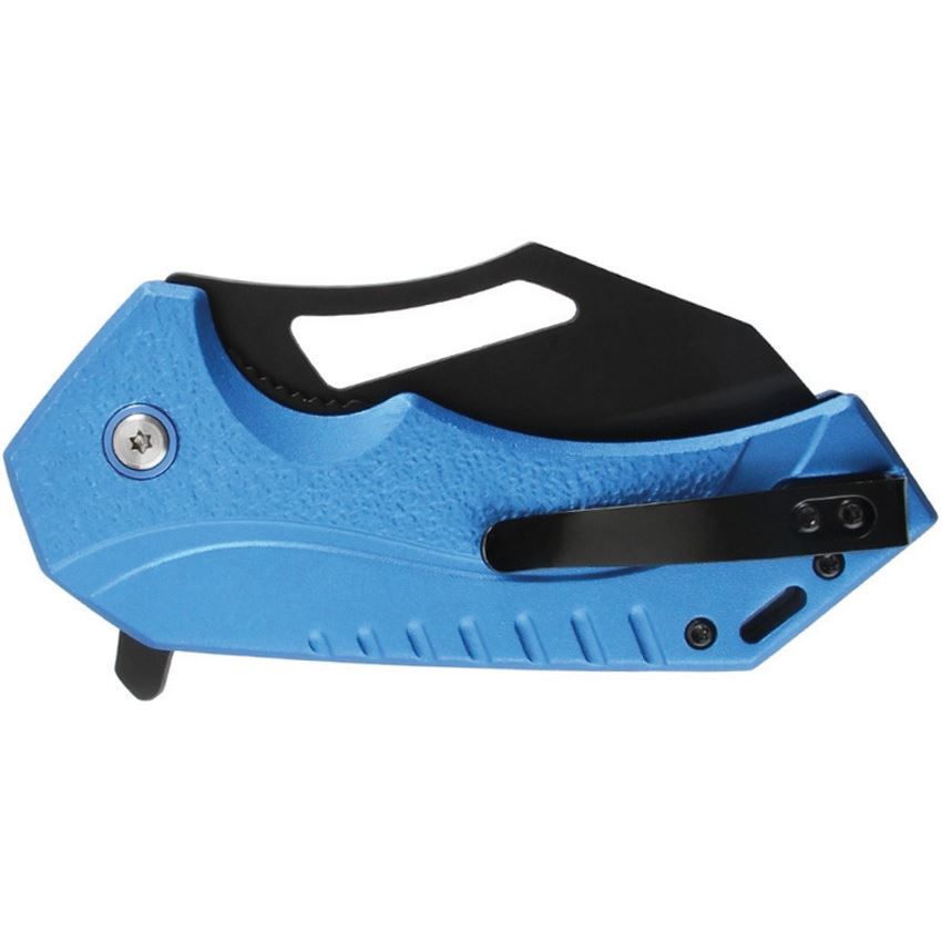 Model/Item/Part Number -TF2020BL. Tac Force Knives - Assist Open Black Linerlock Knife Black/Blue Aluminum Handles. Assisted opening. 4.75" (12.07cm) closed. 3.5" (8.89cm) black oxide coated 3Cr13MoV stainless blade. Black and blue anodized aluminum handle. Extended tang. Thumb pull. Lanyard hole. Pocket clip. Boxed. Made in China.