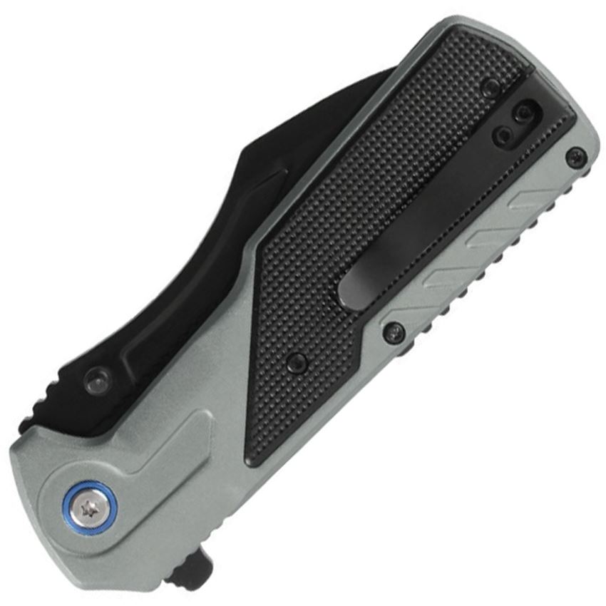 Model/Item/Part Number -TF2022GY. Tac Force Knives - Assist Open Black Linerlock Knife Gray Aluminum Handles. Assisted opening. 4.75" (12.07cm) closed. 3.5" (8.89cm) black oxide coated 3Cr13MoV stainless blade. Gray anodized aluminum handle with black acrylic inlay. Extended tang. Thumb stud. Pocket clip. Boxed. Made in China.