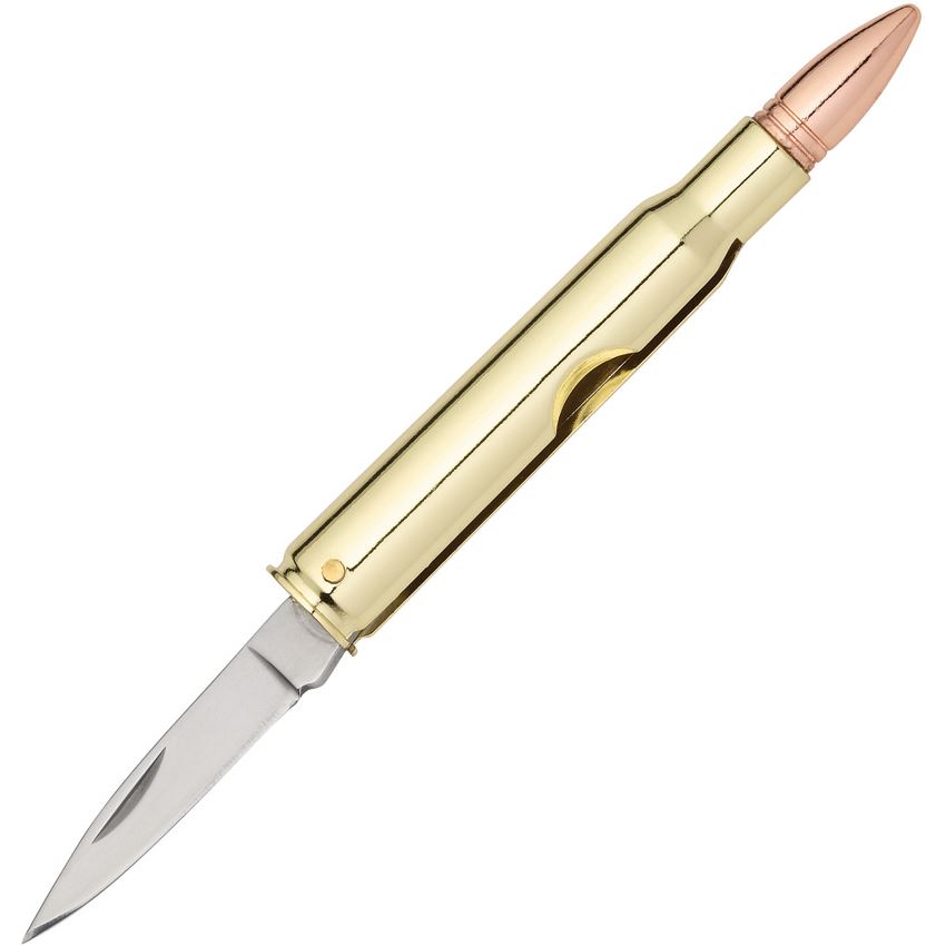 • Includes: 3.75 inch closed Gunstock folder with drop point and pen blades and pakkawood handles; 3.13 inch closed Bullet folder with pen blade and bullet shaped metal handle; Key ring
