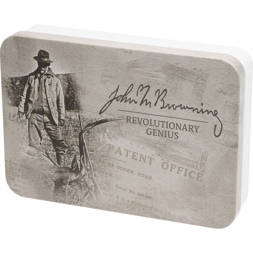 Model/Item/Part Number -BR0576. Browning Knives - John M Browning Combo Tin. Includes: 3.75" closed Gunstock folder with drop point and pen blades and pakkawood handles; 3.13" closed Bullet folder with pen blade and bullet shaped metal handle; Key ring. Gift tin with John M. Browning artwork. Clam packed. Made in China.