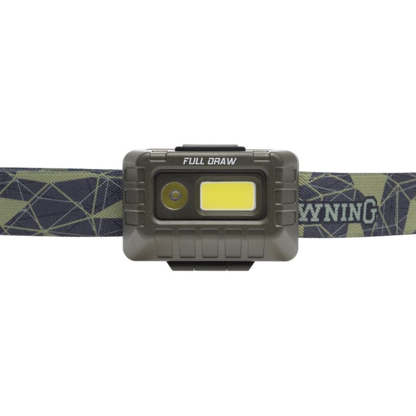 Model/Item/Part Number -BR3003. Browning Knives - Full Draw Headlamp. Water resistant. Impact resistant. Modes: White wide angle high/low; White high spot; Wide angle plus; green. Electronic lock-out. Quick off function. Last light memory. 500 max lumens. 60 hours max runtime. Camo headband. 67 yd beam distance. Requires (3) AAA batteries (included). Polymer construction. Color: Green. Clam packed. Made in China.