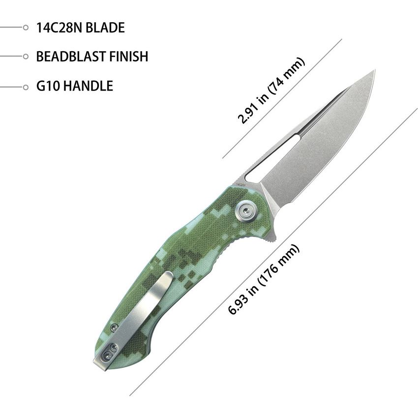 • Kubey Knives - Dugu Stonewash 14C28N Linerlock Knife Digital Camo G10 Handles
