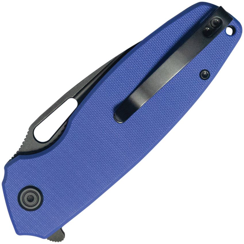 Model/Item/Part Number -KUB322V. Kubey Knives - Tityus Blackwash 14C28N Drop Point Linerlock Knife Blue G10 Handles. 4.75" (12.07cm) closed. 3.38" (8.59cm) BlackWash finish 14C28N Sandvik stainless drop point blade. Blue G10 handle. Extended tang. Lanyard hole. Pocket clip. Thumb pull. Boxed. Made in China.