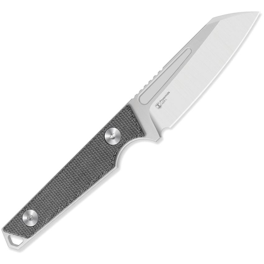 Model/Item/Part Number -KI1079A3. Kizer Cutlery & Knives - Phasmids Satin AEB-L Sheepsfoot Fixed Blade Knife Gray Canvas Micarta Handles. 6.13" (15.57cm) overall. 2.88" (7.32cm) satin finish AEB-L stainless sheepsfoot blade. Gray canvas micarta handle. Full, extended tang. Lanyard hole. Black Kydex belt sheath. Boxed. Made in China.