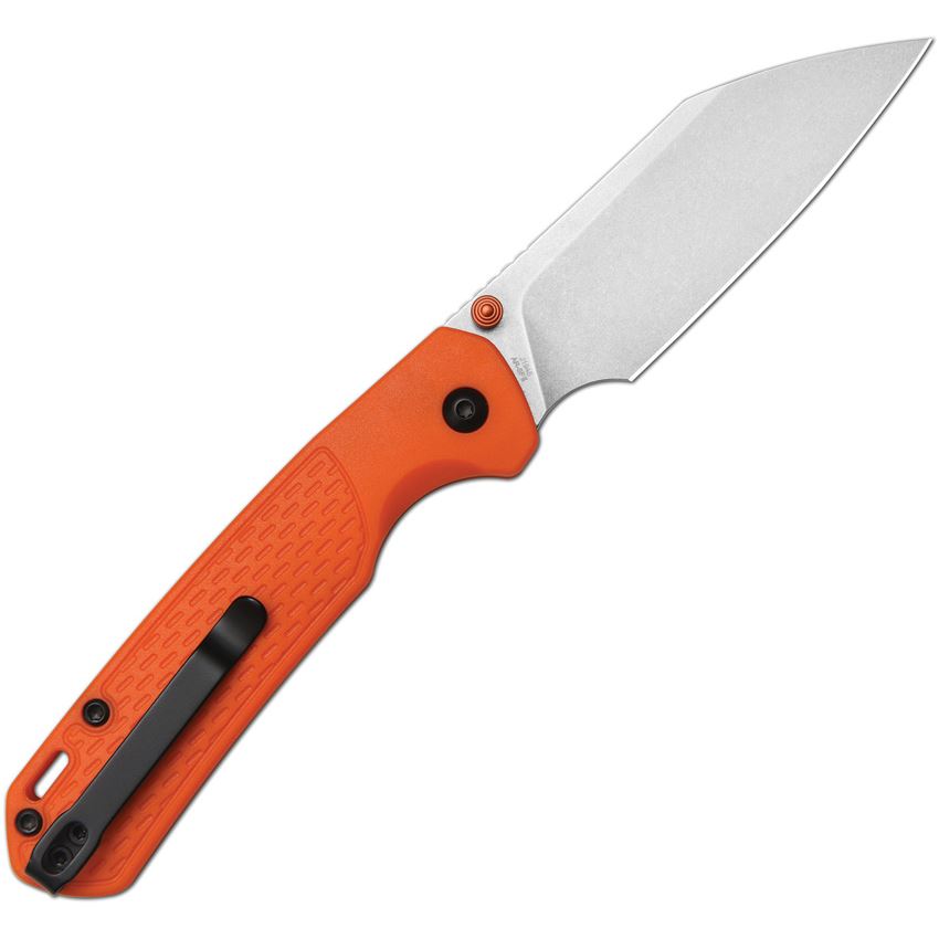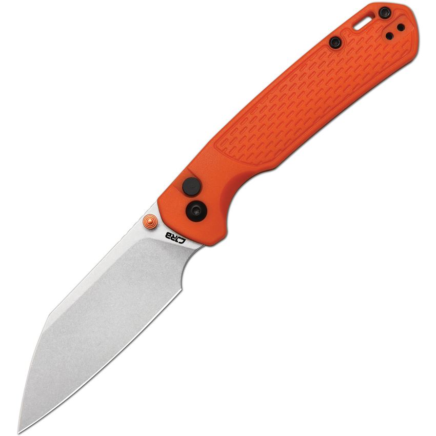 Model/Item/Part Number -J1945OE. CJRB Knives - Pyrite Light Stonewash Wharncliffe Button Lock Knife Orange FRN Handles. 4.25" (10.8cm) closed. 3.25" (8.26cm) stonewash finish AR-SFII steel Wharncliffe blade. Orange FRN handle. Thumb stud. Lanyard hole. Pocket clip. Black nylon zippered storage case. Boxed. Made in China.