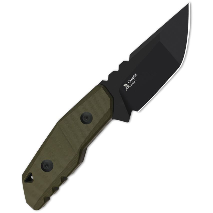 • Kizer Cutlery & Knives - Quartz Blackwash AEB-L Tanto Fixed Blade Knife Od Green G10 Handles