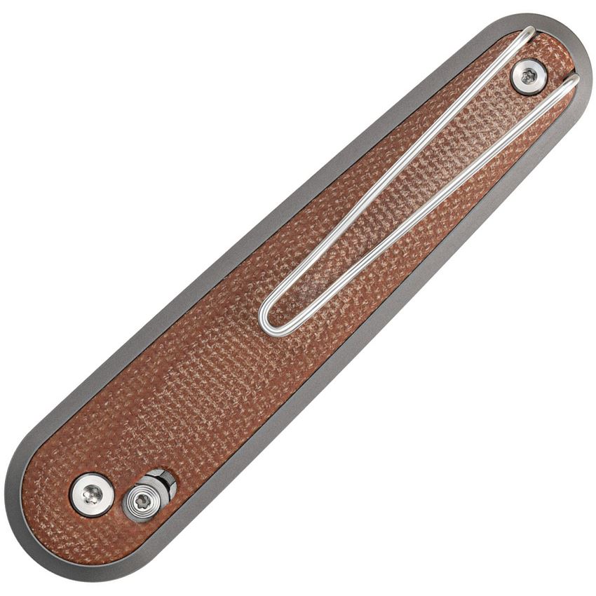 Model/Item/Part Number -SRM251MBMN. SRM Knives - Twin 251MB Ambi-Lock Knife Mic Bead Blast Dagger Knife Brown Canvas Micarta Handles. 4" (10.16cm) closed. 3" (7.62cm) bead blast finish false edge Bohler N680 stainless dagger blade. Brown canvas micarta handle. Pocket clip. Boxed. Made in China.