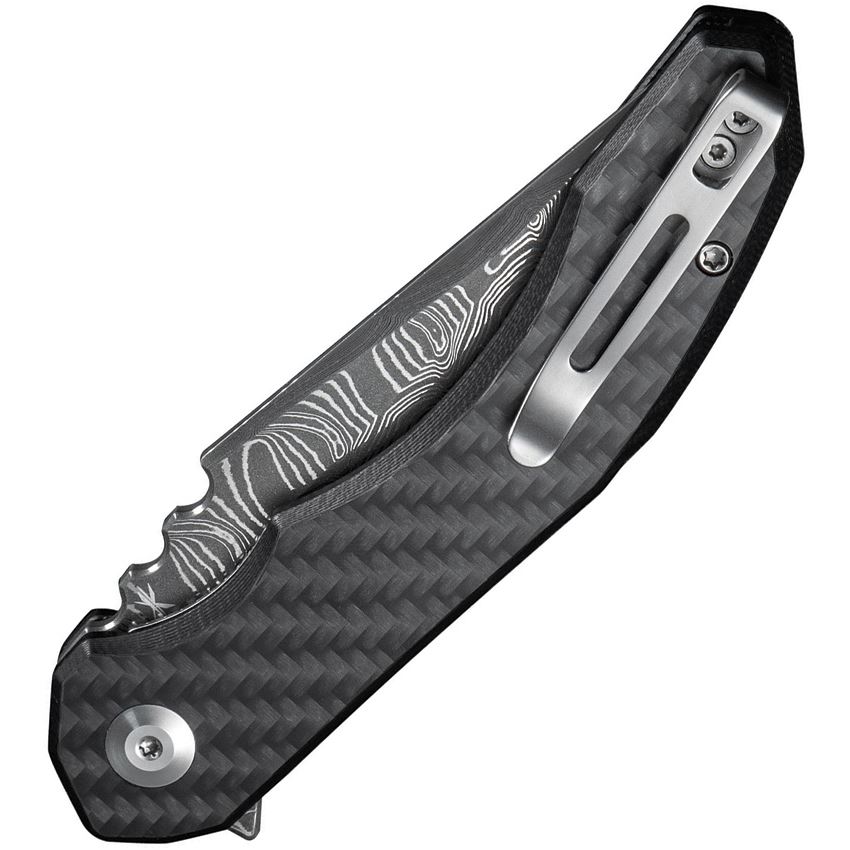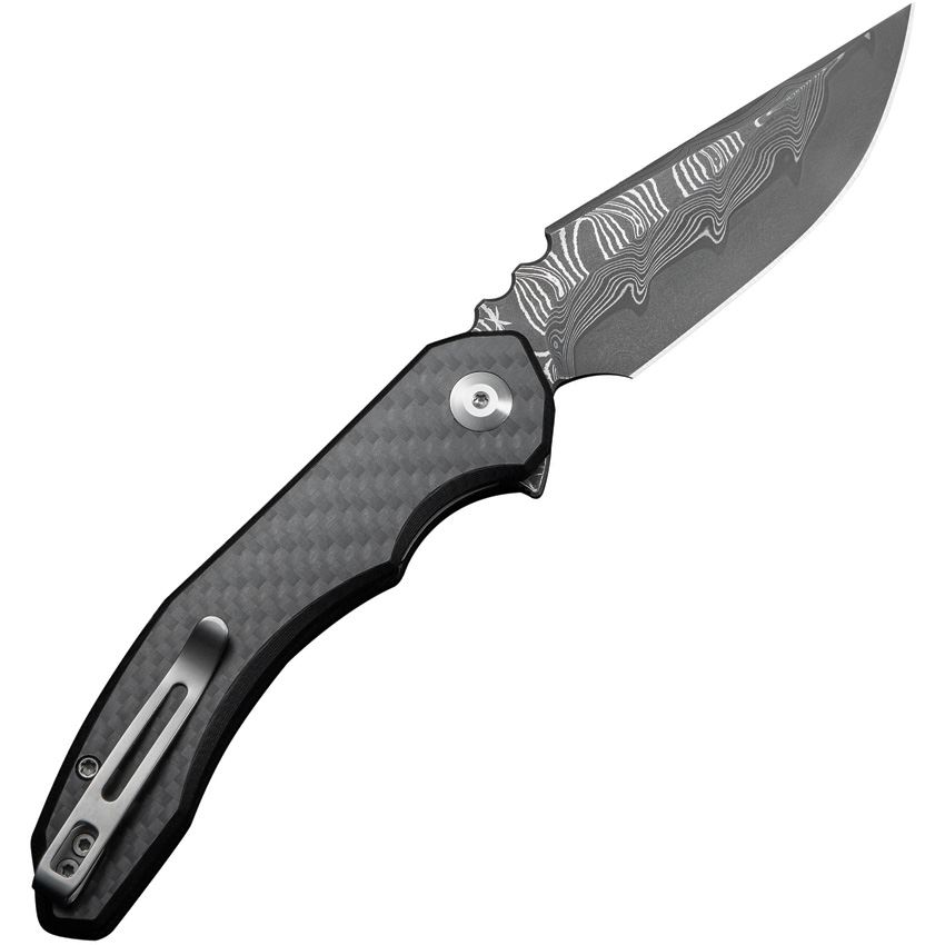 Model/Item/Part Number -CIVC23050DS2. Civivi Knives - BluetickDamascus Linerlock Knife Black/Carbon Fiber Handles. 4.5" (11.43cm) closed. 3.5" (8.89cm) black stonewash finish Damascus steel blade. Black G10 handle with carbon fiber onlay. Extended tang. Pocket clip. Boxed. Made in China.