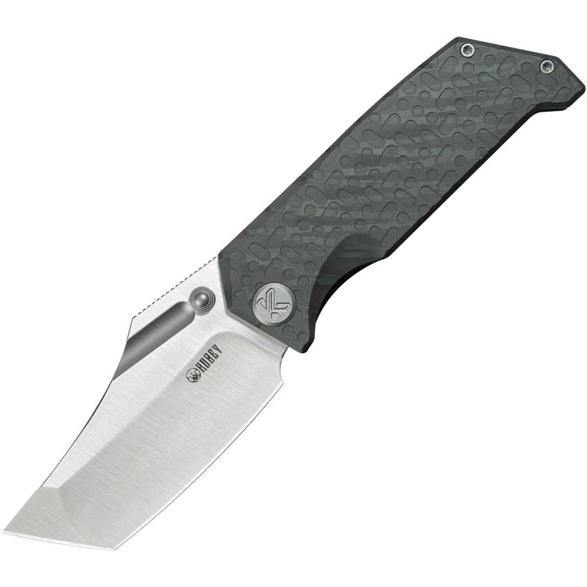 • Kubey Knives - Hamster Satin 14C28N Clip Point Framelock Knife Flame Textured Titanium Handles