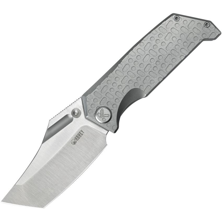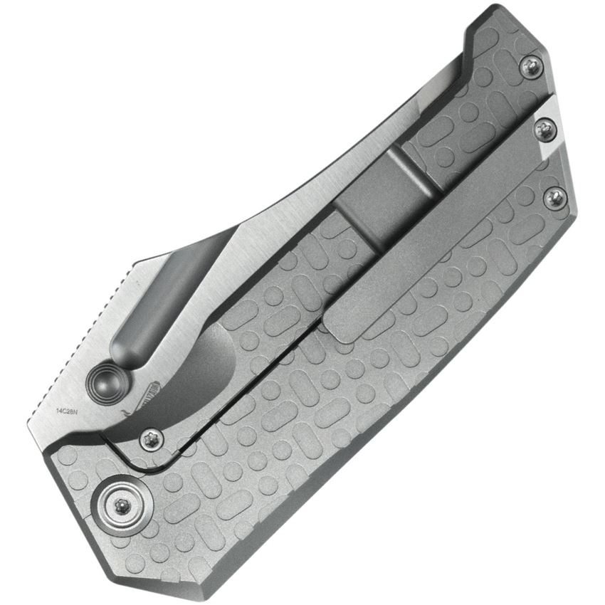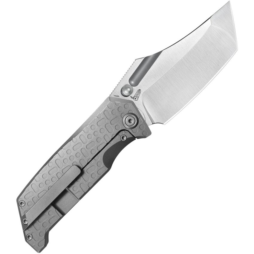 • Kubey Knives - Hamster Satin 14C28N Clip Point Framelock Knife Gray Textured Titanium Handles