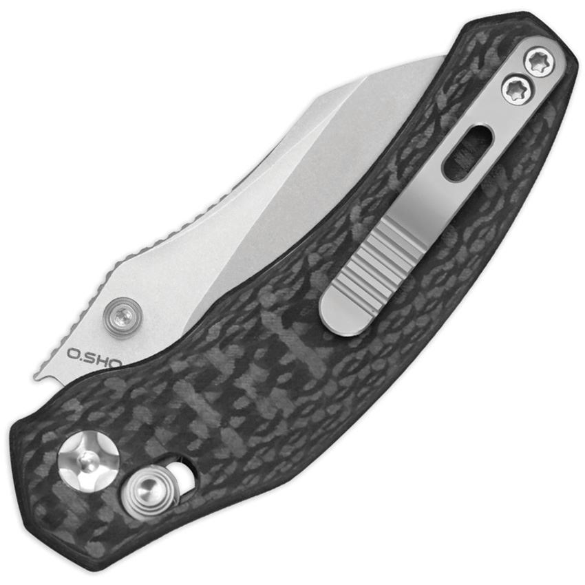 Model/Item/Part Number -KI3672SA3. Kizer Cutlery & Knives - Mini Bulldog Stonewash Nitro V Sheepsfoot Clutch Lock Knife Carbon Fiber Handles. 3.63" (9.22cm) closed. 2.5" (6.35cm) stonewash finish S45VN stainless sheepsfoot blade. Carbon fiber handle. Thumb stud. Pocket clip. Boxed. Made in China.