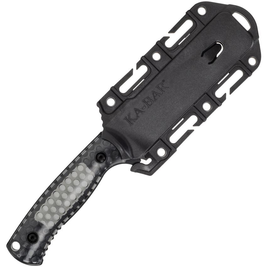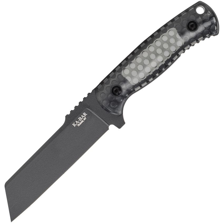 Model/Item/Part Number -KA7701. Ka-Bar Knives - George Cool Name Black Carbon Steel Sheepsfoot Fixed Blade Knife Smoked Handles. 9" (22.86cm) overall. 4.25" (10.8cm) black finish 1095 Cro-Van carbon steel sheepsfoot blade. Smoked translucent polycarbonate handle. Full tang. Lanyard hole. Black molded plastic belt sheath. Boxed. Proudly made in the USA.