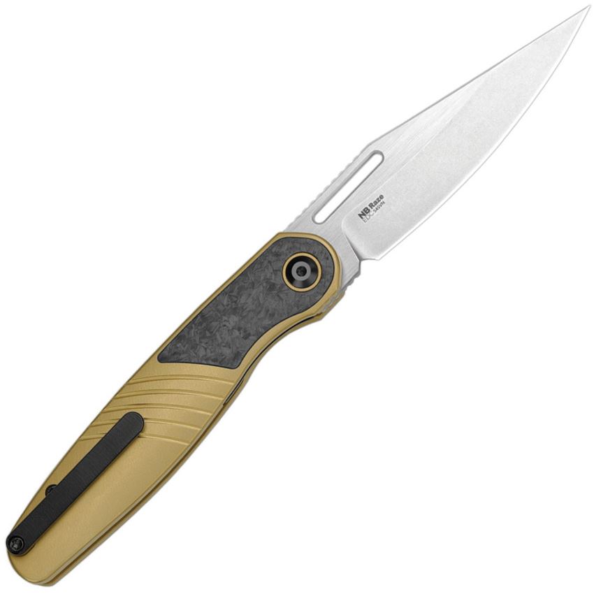• Kizer Cutlery & Knives - Raze Stonewash S45VN Clip Point Framelock Knife Gold Carbon Fiber Handles