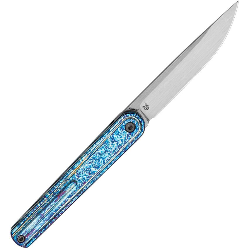 Model/Item/Part Number -BTKT2502E. Bestech Knives - Ink MagnaCut Linerlock Knife Lightning Titanium Handles. 4" (10.16cm) closed. 3.13" (7.95cm) MagnaCut steel blade. Lightning strike anodized titanium handle. Extended tang. Pocket clip. Hand applied horizontal satin finish blade. Boxed. Made in China.