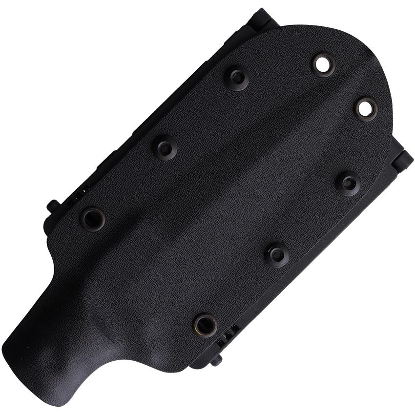 • Curran Blades - Javelin Black Carbon Steel Double Edge Fixed Blade Knife Black/Tan G10 Handles Tan Kydex Sheath