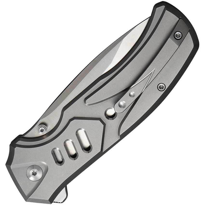 We 240942 Zentron Satin M390 Tanto Button Lock Knife Gray Titanium Handles