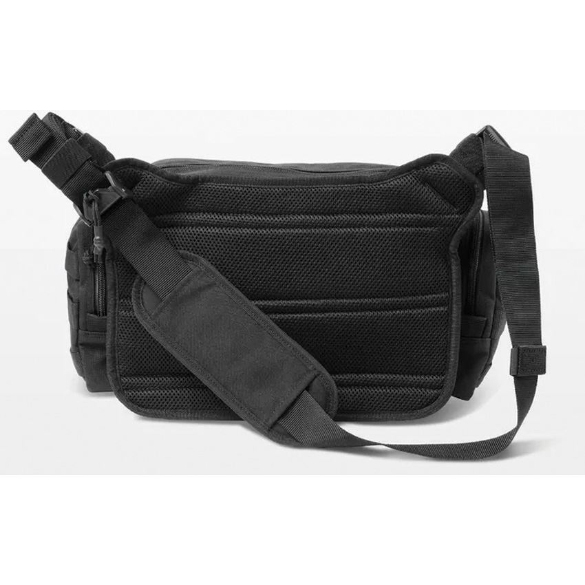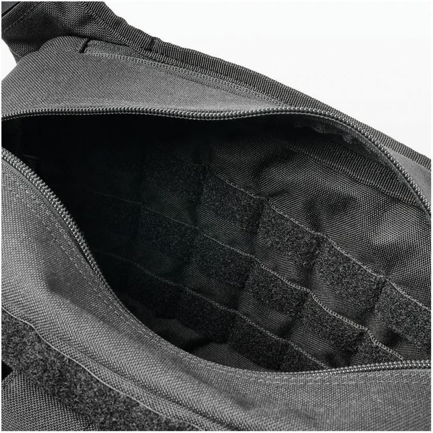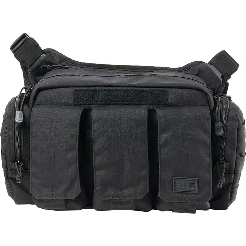 Model/Item/Part Number - FTL5860120. 5.11 Tactical Knives & Gear - Bailout Bag. Ambidextrous adjustable quick release shoulder strap with removable shoulder pad. 3 front pockets with drain holes and internal elastic band. Center zip opening to main compartment. Internal loop platform on front with zippered pocket. Rear expandable zippered compartment. Custom 1.5" spring cam buckle. 2 side zippered pockets with external web MOLLE platform and internal elastic bands. Internal loop faced web MOLLE platform on back. Included removable divider. Mesh back panel 1050D nylon. Color: Black. Bagged. Made in China.