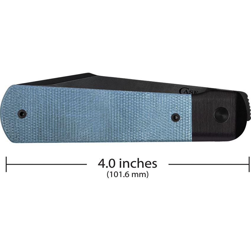 Model/Item/Part Number - CA10845. Case XX Knives - Longhouse Blackwash CPM-20CV Clip Point Linerlock Knife Denim Micarta Handles. LONGHOUSE CPM20CV pattern. 4" (10.16cm) closed. 3" (7.62cm) black stonewash finish CPM-20CV stainless clip point blade. Denim canvas micarta handle. Stainless bolster(s). Extended tang. Pocket clip. Boxed. Proudly made in the USA.