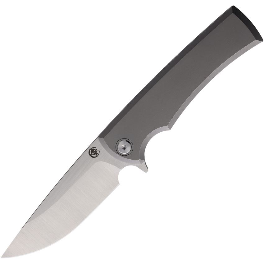 • Chaves Knives - Liberation Street Satin M390 Drop Point Framelock Knife Stonewash Titanium Handles