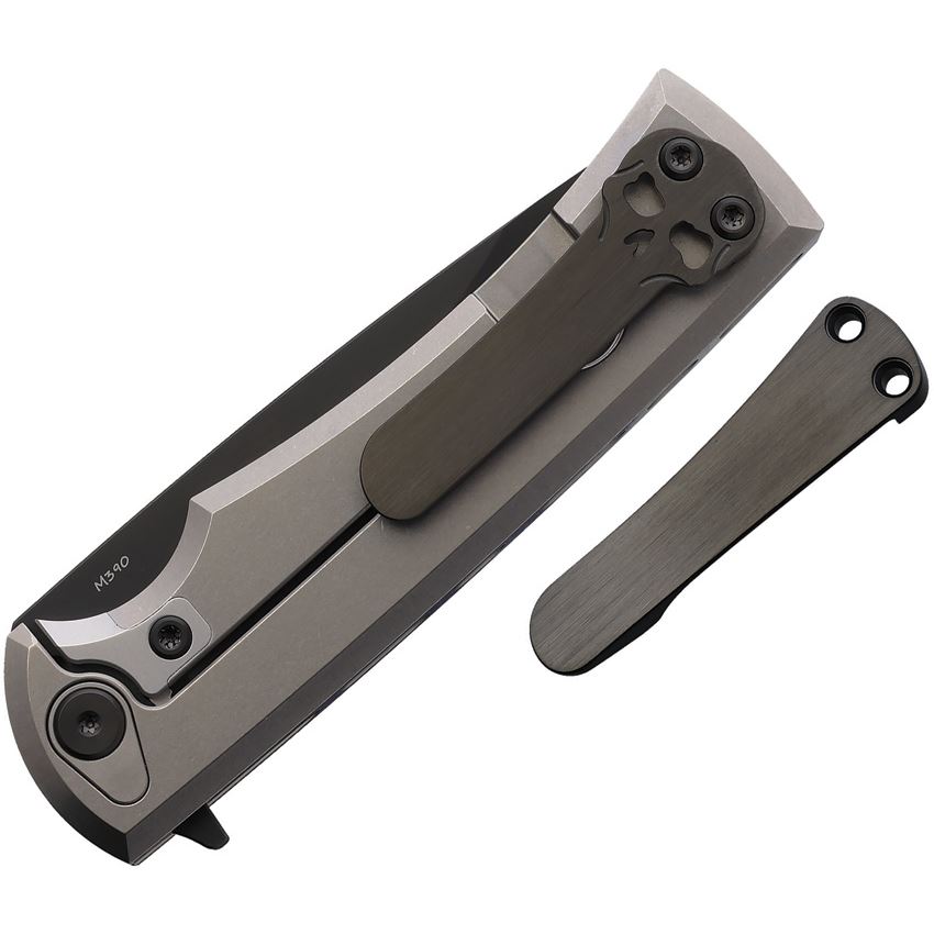 • Chaves Knives - Liberation Street Black M390 Drop Point Framelock Knife Stonewash Titanium Handles
