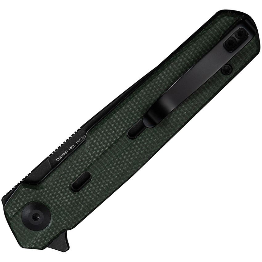 Model/Item/Part Number - CIVC25015A2. Civivi Knives - Navo Blackwash Nitro V Drop Point Linerlock Knife Green Canvas Micarta Handles. 4.38" (11.13cm) closed. 3.25" (8.26cm) black stonewash finish Nitro V steel drop point blade. Green canvas micarta handle. Extended tang. Pocket clip. Black nylon zippered storage case. Boxed. Made in China.