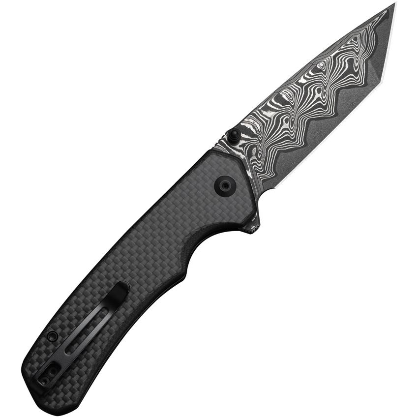 • Civivi Knives - Brazen Damascus Tanto Button Lock Knife Black G10/Carbon Fiber Handles