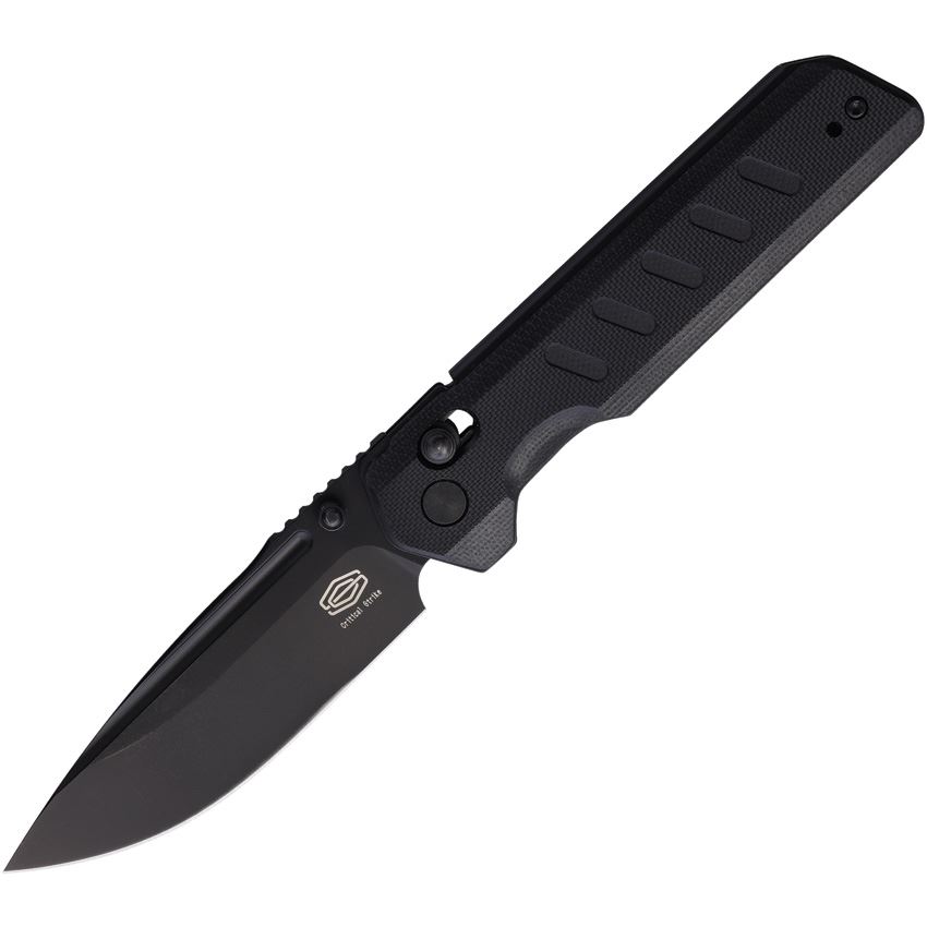 • Critical Strike Knives - X504 Black VG-10 Drop Point Slide Lock Knife Black G10 Handles