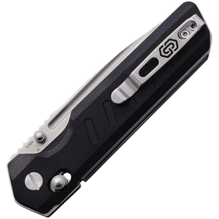 Critical Strike X504BKSA X504 Satin VG-10 Drop Point Slide Lock Knife Black G10 Handles