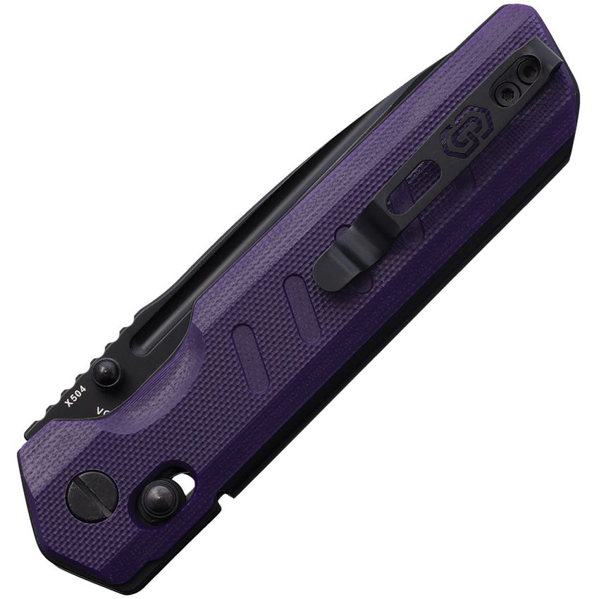 Critical Strike X504PLBF X504 Black VG-10 Drop Point Slide Lock Knife Purple G10 Handles