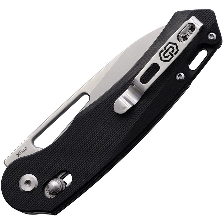 Model/Item/Part Number - CRSX503BK. Critical Strike Knives - X503 Satin VG-10 Drop Point Slide Lock Knife Black G10 Handles. 4.5" (11.43cm) closed. 3.5" (8.89cm) satin finish VG-10 stainless drop point blade. Black G10 handle. Thumb pull. Lanyard hole. Pocket clip. Boxed. Made in China.