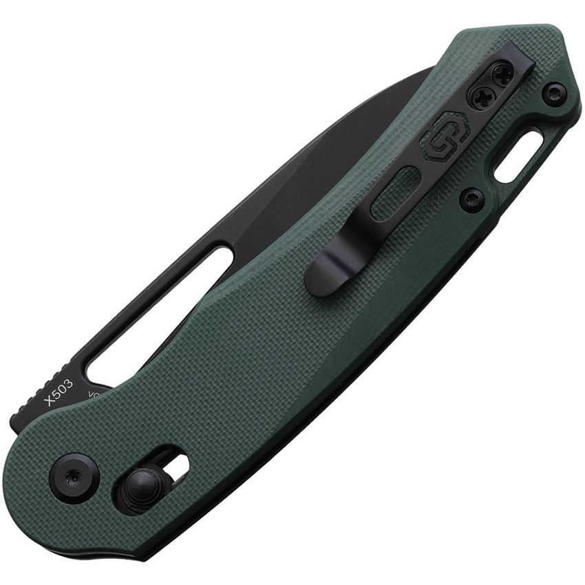Critical Strike X503GN X503 Black Stonewash VG-10 Drop Point Slide Lock Knife Green G10 Handles
