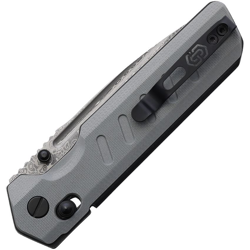 • Critical Strike Knives - X504 Damascus Drop Point Slide Lock Grey G10 Handles