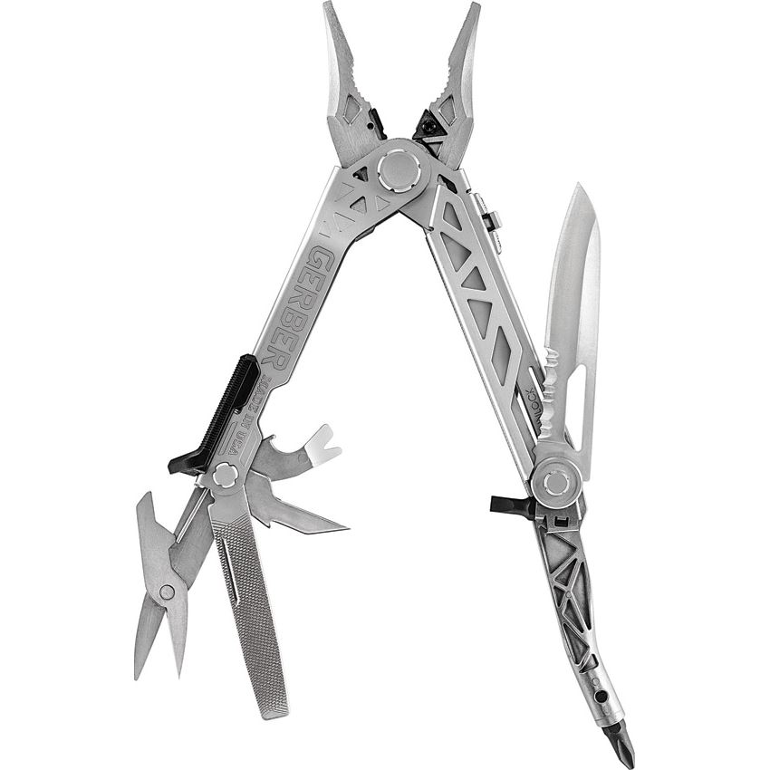 Model/Item/Part Number - G3402. Gerber Knives - Center Drive Plus Bits Leather. 4.75" closed. 6.63" overall. Tools include: Needlenose pliers l Wire stripper l Wire cutter l Serrated blade l Pry bar l Bottle opener l Awl l File l Scissors. One thumb opening system. X-Channel rail system. Magnetic 3.2" center-axis bit driver. Magnetic flathead and Phillips bits. All tools are tumbled finish. Brown leather belt sheath. Clam packed. Made in China.
