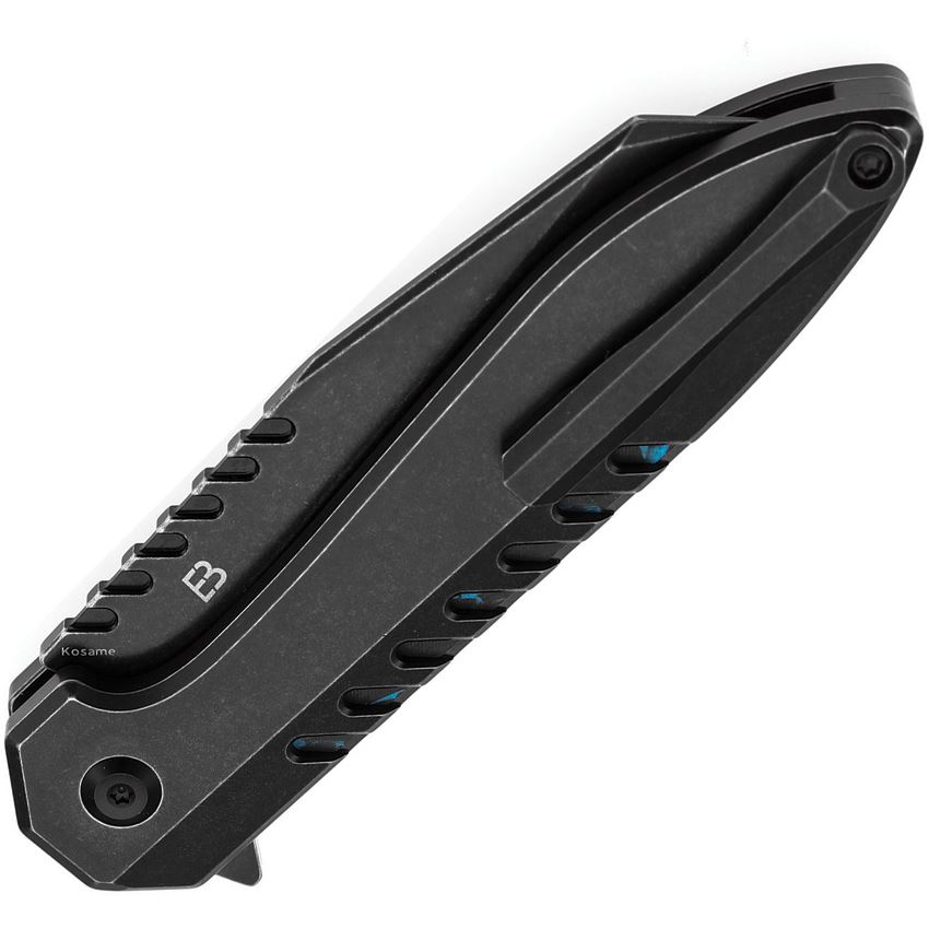 Model/Item/Part Number - KT1093F2. Kansept Knives - Kosame Blackwash 154CM Wharncliffe Button Lock Knife Blackwash Finish Titanium Handles. 4.5" (11.43cm) closed. 3.38" (8.59cm) BlackWash finish 154CM stainless Wharncliffe blade. BlackWash finish titanium handle. Extended tang. Pocket clip. Black nylon pouch. Boxed. Made in China.