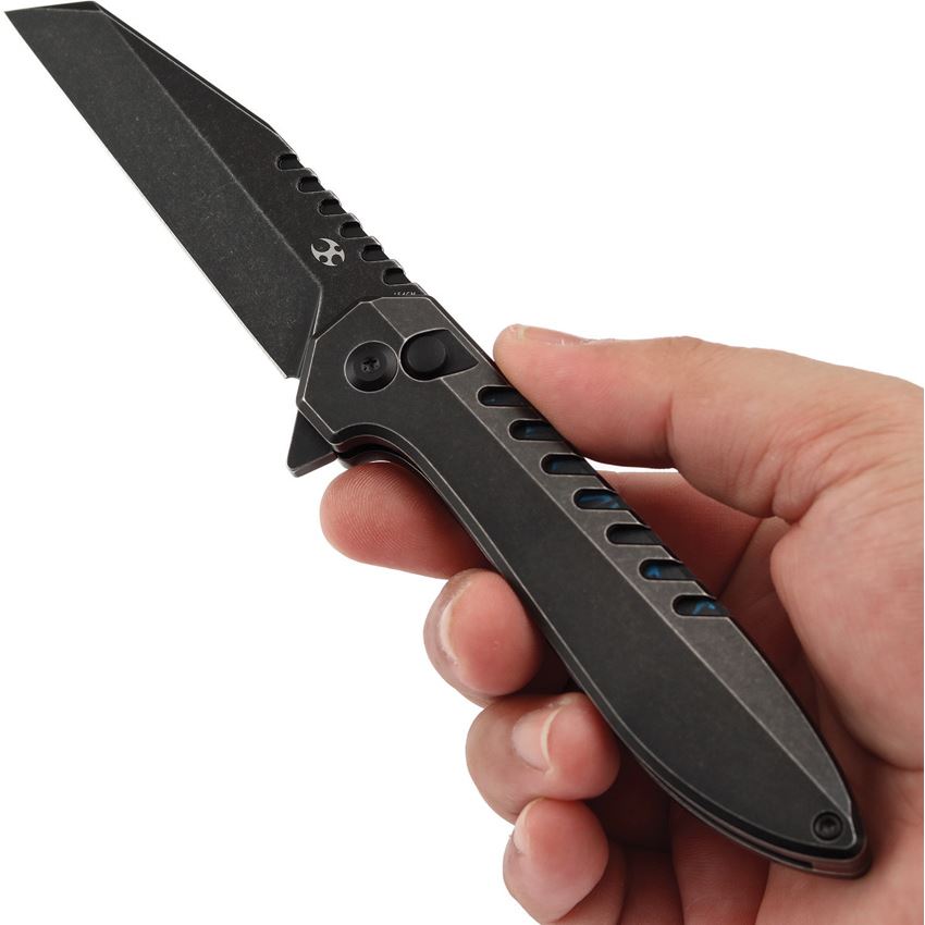 • Kansept Knives - Kosame Blackwash 154CM Wharncliffe Button Lock Knife Blackwash Finish Titanium Handles