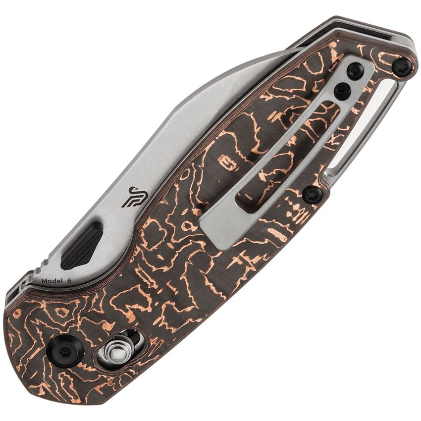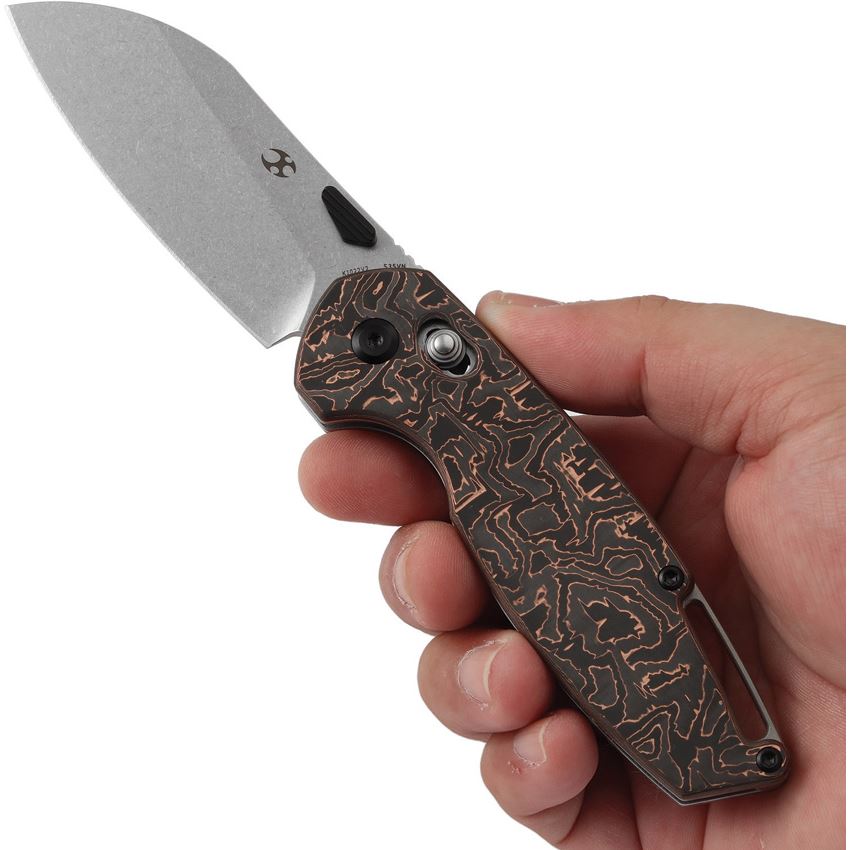 • Kansept Knives - Model 6 Stonewash S35VN Sheepsfoot Crossbar Lock Knife Copper Foil Carbon Fiber Handles