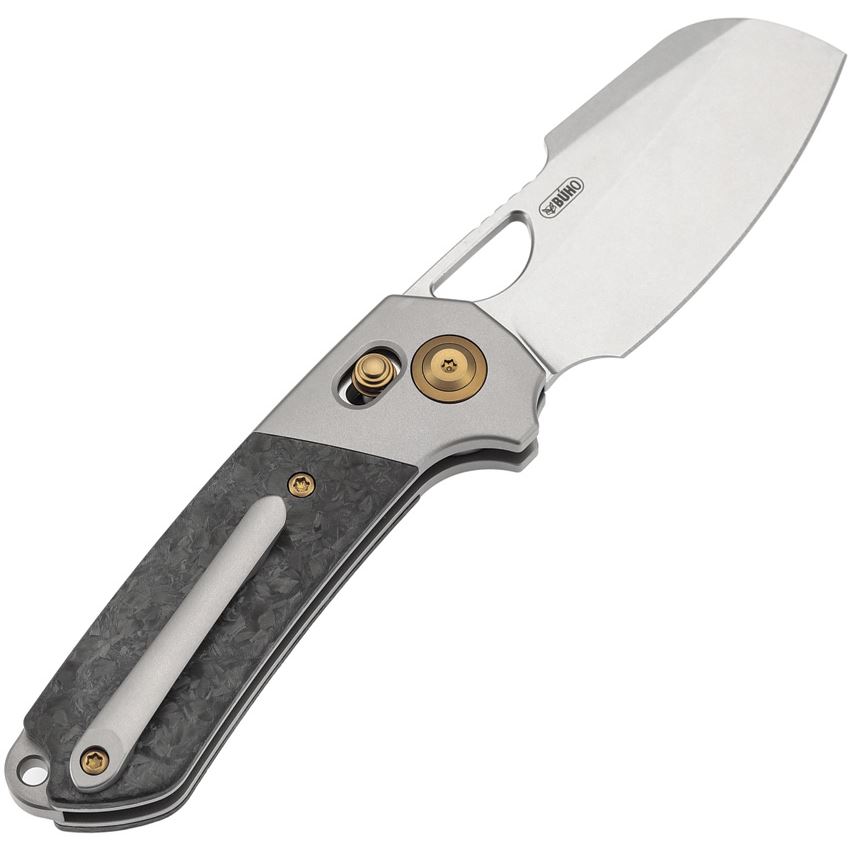 Model/Item/Part Number - K2125V2. Kansept Knives - Nahual Stonewash MagnaCut Crossbar Lock Knife Shredded Carbon Fiber Handles. 4.13" (10.49cm) closed. 3" (7.62cm) stonewash finish MagnaCut steel blade. Shredded carbon fiber handle. Titanium bolster(s). Thumb pull. Lanyard hole. Pocket clip. Black nylon pouch. Boxed. Made in China.